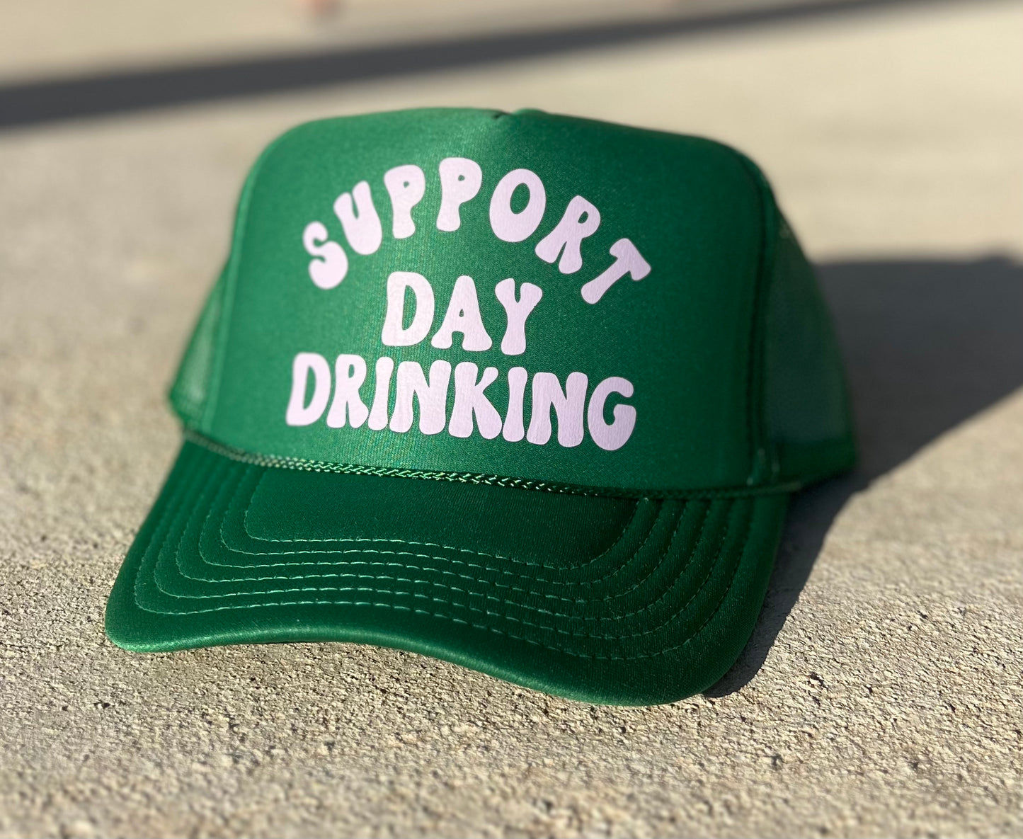 It's summer time, day drinking is always accepted. We paired our jade green trucker with a soft lavender font for the perfect combination.